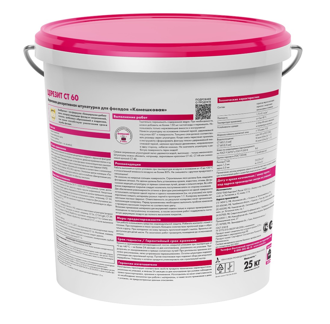 Штукатурка СТ 60/25 кг акриловая-это готовая к применению декоративная структурная штукатурка с фракцией наполнителя 2,5 мм.