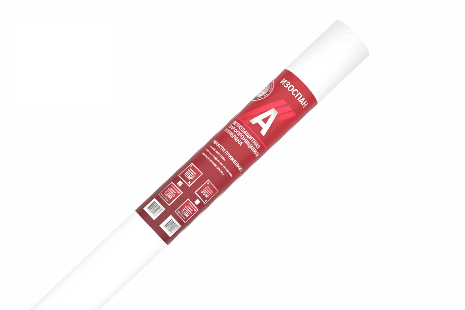 Изоспан А – гидроизоляционная ветрозащитная паропроницаемая трехслойная мембрана, применяется для защиты утеплителя и внутренних элементов стен от ветра, атмосферной влаги, пороши, а также обеспечивает выведение водяных паров из утеплителя в зданиях всех типов.