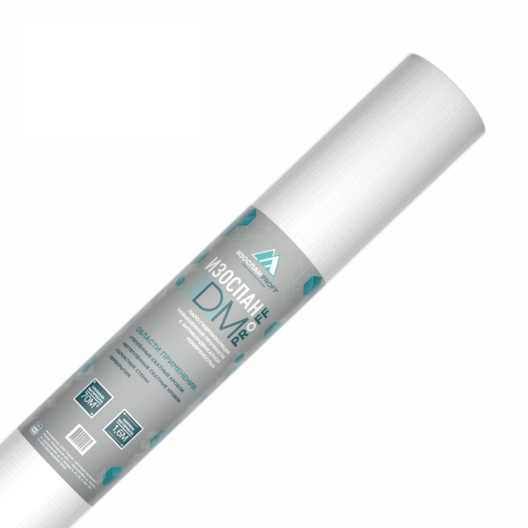 Изоспан DM — материал на основе высокопрочного тканого полипропиленового полотна с антиконденсатной поверхностью. Антиконденсатная поверхность материала Изоспан DM снижает риск падения капель конденсата с поверхности материала на внутреннюю отделку, а в случае неутепленной кровли — на перекрытие чердака.