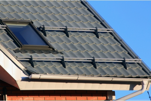 Снегозадержатели предотвращают неконтролируемый сход снега и наледи с кровли. Принцип действия снегозадержателя — порционное пропускание снега и наледи между кровлей и трубками.