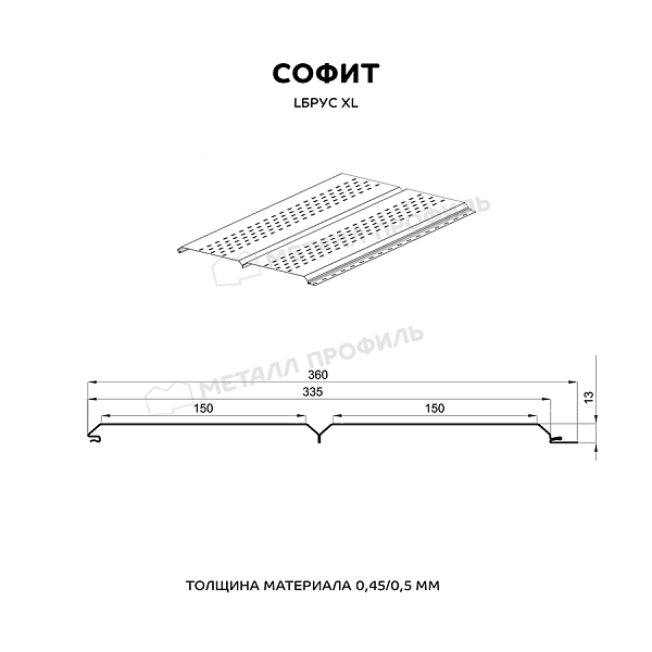 Софит Металл Профиль перфор. Lбрус-XL-14х335 (ПЭ-01-1015-0.45)
