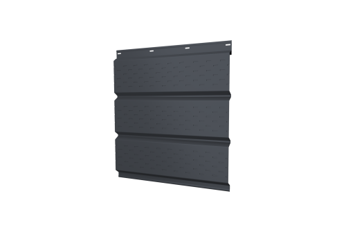 Описание товара: "Софит металлический полная перфорация 0,5 Satin Мatt с пленкой RAL 7024 мокрый асфальт"