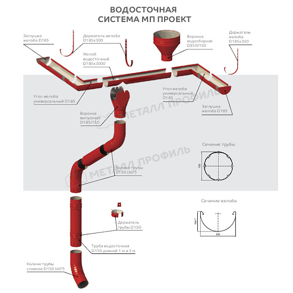 - Основа из стали не позволяет Труба водосточная МЕТАЛЛ ПРОФИЛЬ ПРОЕКТ D150х3000 Ral 8017 корродировать.